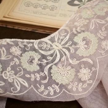 チュール刺繍レース パーツ ピンク グリーン 12×110cm