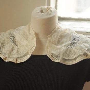 アンティーク、レースとプリーツ飾りの付け襟です。