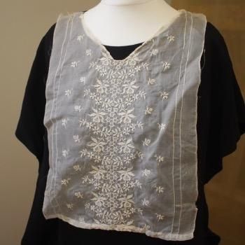 アンティーク、白糸刺繍(ホワイトワーク)が施されたプラストロン(襟、胸元飾り)です。