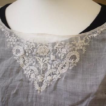 アンティーク、白糸刺繍(ホワイトワーク)が施されたプラストロン(襟、胸元飾り)です。